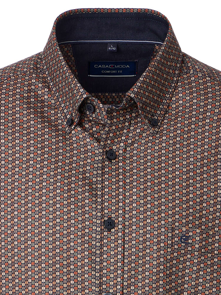 La camicia casual comoda della collezione CASAMODA Comfort Fit rappresenta l'uomo colto e attento alla moda di oggi. Un taglio classico combinato con dettagli di prodotto alla moda promette un alto livello di comfort e rende questa camicia un maestro della combinazione. La camicia fantasia de uomo del colore marrone da uomo non dovrebbe mancare nel guardaroba di nessun uomo e può essere indossata con il collo elegante e intramontabile Button-down per qualsiasi occasione e nella vita di tutti i giorni. Questa camicia da uomo CASAMODA Comfort Fit si presenta al meglio con una cravatta abbinata e un nodo di cravatta largo.