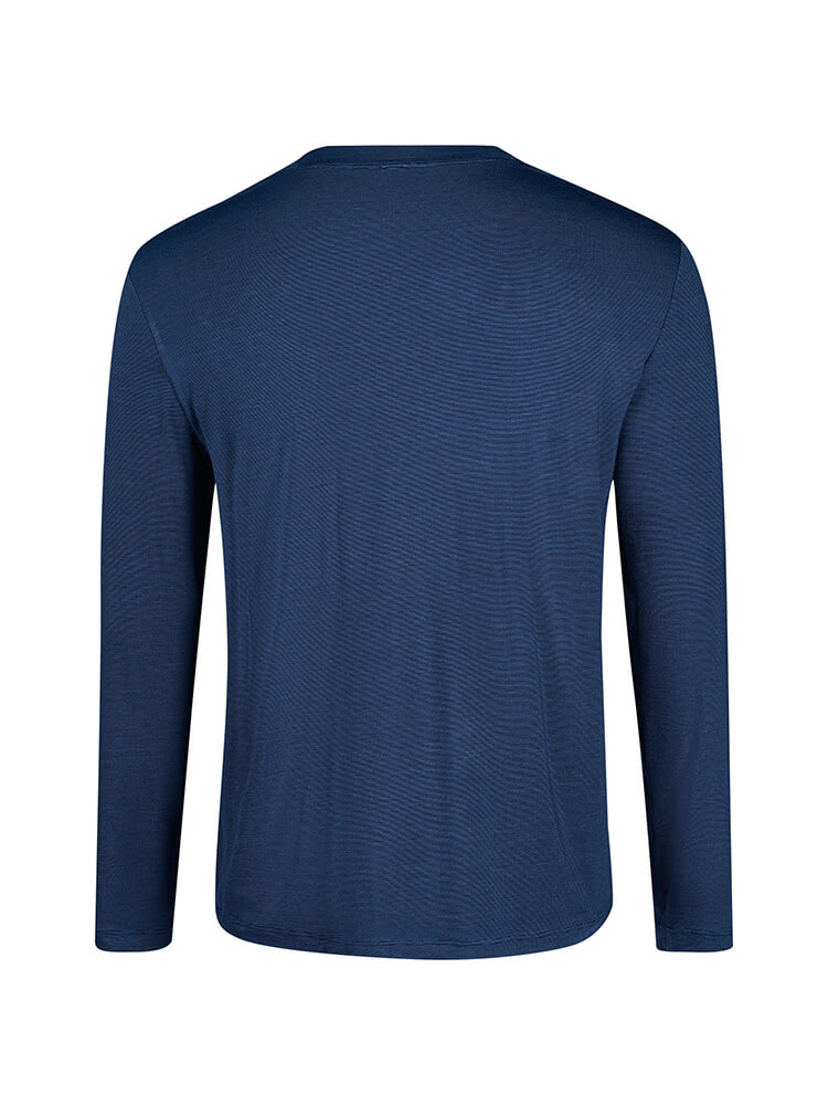 La t-shirt da notte SKINY Cooling Deluxe in blu navy a righe offre una sensazione di leggerezza e traspirabilità. Il morbido tessuto jersey, composto al 95% da viscosa e al 5% da elastan, garantisce comfort e massima libertà di movimento. Con scollo rotondo, maniche lunghe e vestibilità comoda, questa t-shirt è eccezionalmente comoda. È lavabile in lavatrice, facile da stirare e di facile manutenzione.