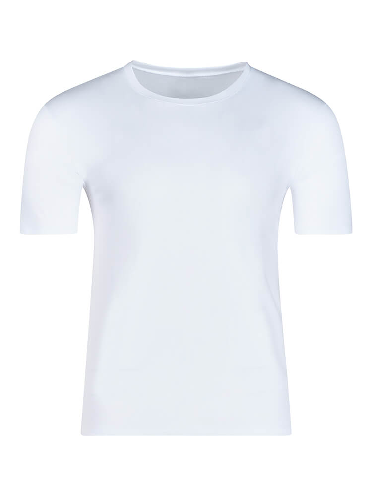 La t-shirt HUBER hautnah Casual Cotton colpisce per il suo morbido tessuto jersey composto da 95% cotone e 5% elastan, che offre una sensazione di comfort sulla pelle e una vestibilità ideale. Il classico girocollo, le maniche a mezza lunghezza e il semplice design bianco a tinta unita la rendono un capo basic versatile, perfetto da indossare da solo o come strato base.