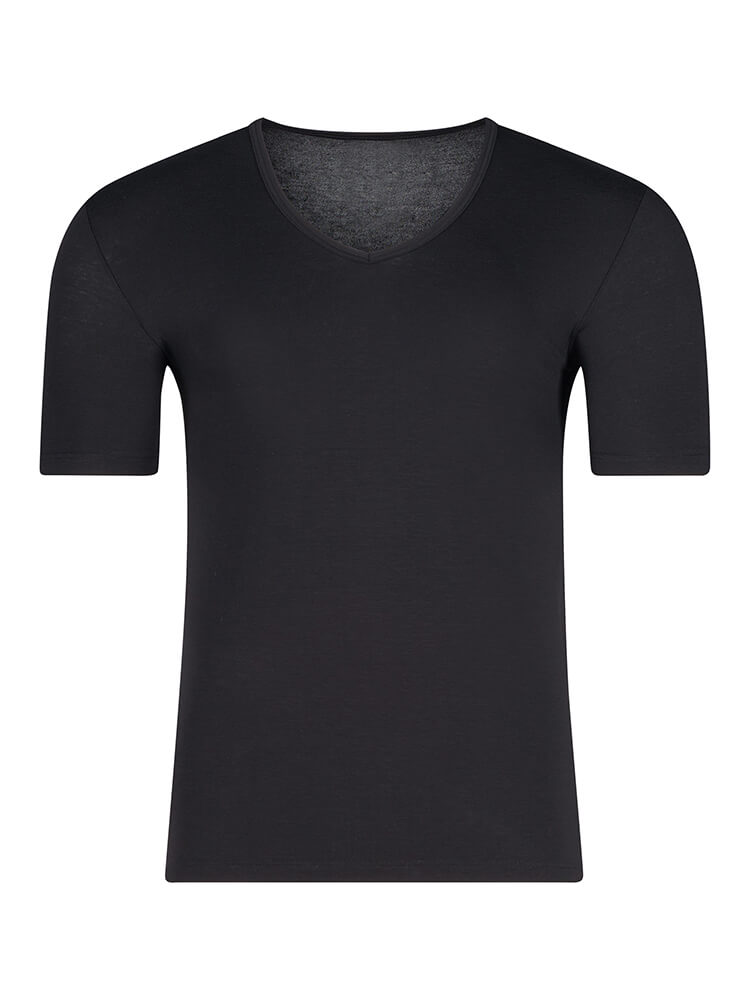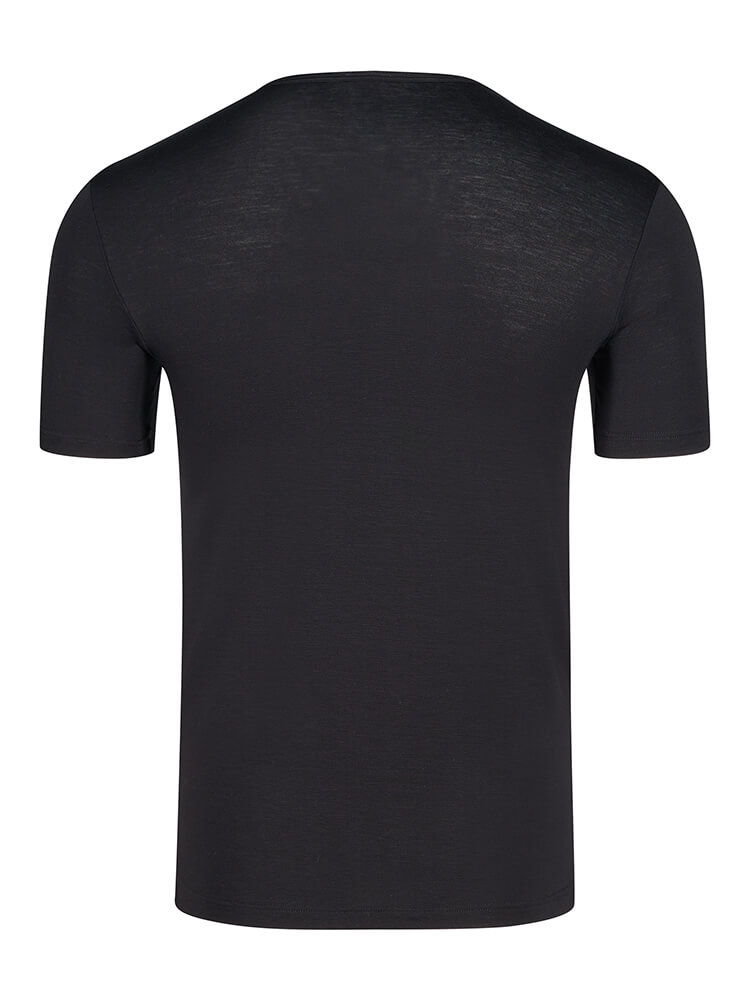 La t-shirt HUBER Hautnah Cool Lyocell Selection nel classico nero offre una sensazione di...altro