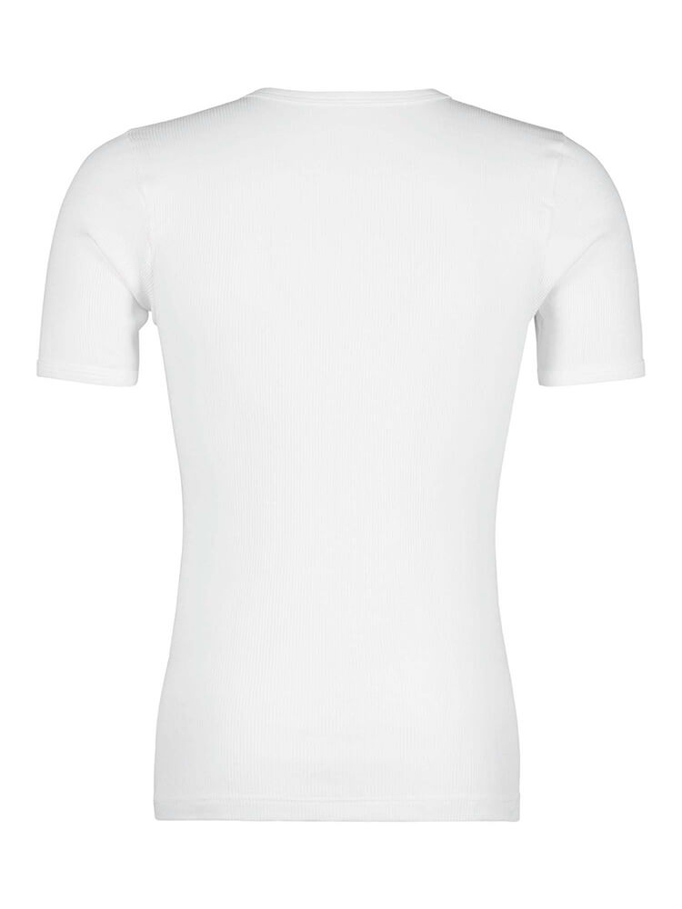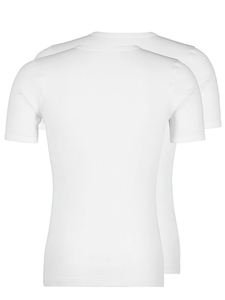 La T-shirt HUBER in cotone a doppia costina, confezione da 2, nel classico bianco, colpisce per...altro