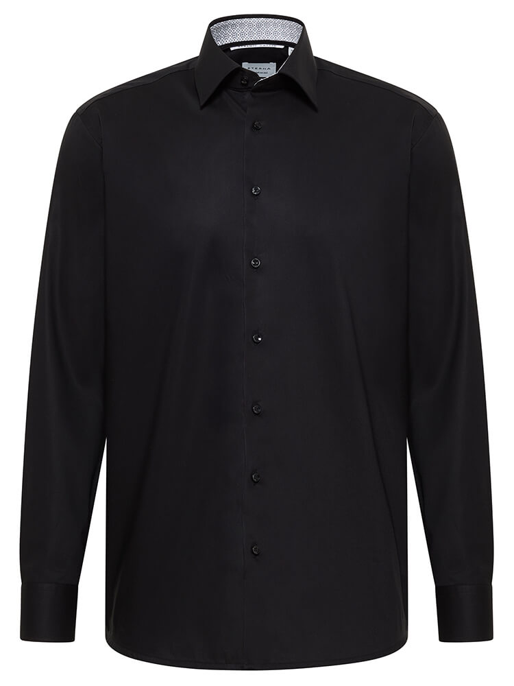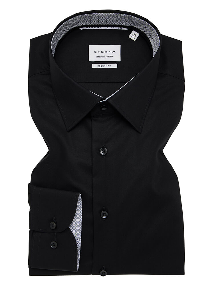 La camicia da ufficio moderna della collezione ETERNA Modern Fit rappresenta l'uomo sicuro di sé e alla moda di oggi. Un taglio contemporaneo combinato con dettagli di prodotto premium promette un alto livello di comfort, rendendo questa camicia un maestro di arrangiamento. La camicia semplice de uomo del colore nero da uomo non dovrebbe mancare nel guardaroba di nessun uomo e può essere indossata con il collo distinto e classico Kent per qualsiasi occasione e nella vita di tutti i giorni. Questa camicia da uomo ETERNA Modern Fit si presenta al meglio con una cravatta abbinata e un nodo di cravatta largo.
