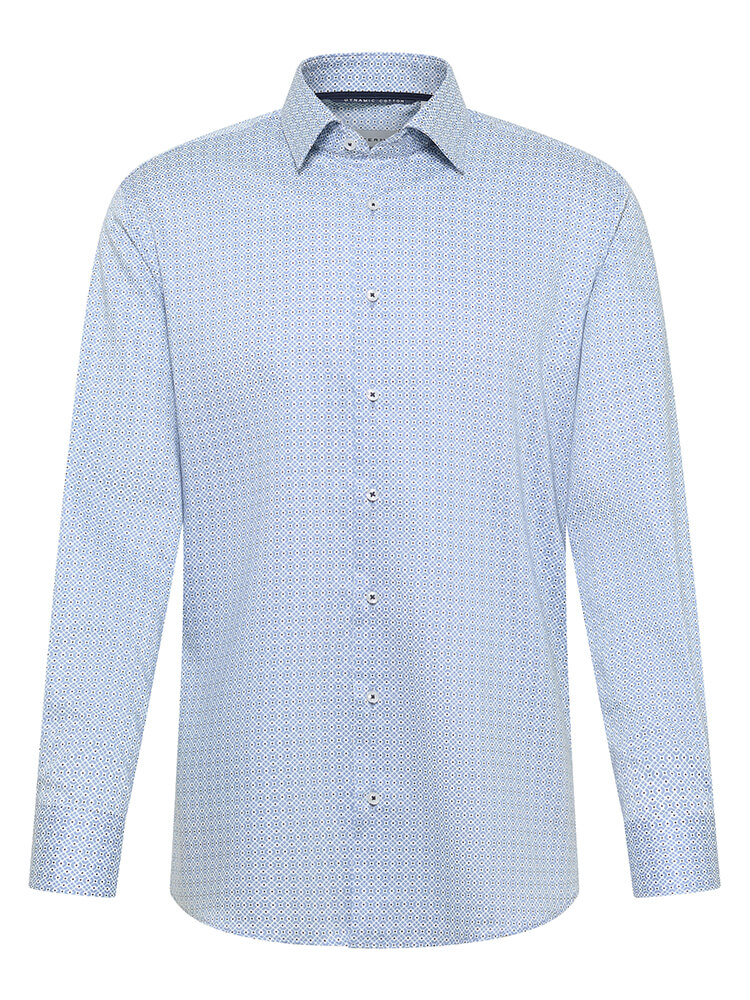 La camicia da ufficio moderna della collezione ETERNA Modern Fit rappresenta l'uomo sicuro di sé e alla moda di oggi. Un taglio contemporaneo combinato con dettagli di prodotto premium promette un alto livello di comfort, rendendo questa camicia un maestro di arrangiamento. La camicia fantasia de uomo del colore azzurro da uomo non dovrebbe mancare nel guardaroba di nessun uomo e può essere indossata con il collo distinto e classico Kent per qualsiasi occasione e nella vita di tutti i giorni. Questa camicia da uomo ETERNA Modern Fit si presenta al meglio con una cravatta abbinata e un nodo di cravatta largo.