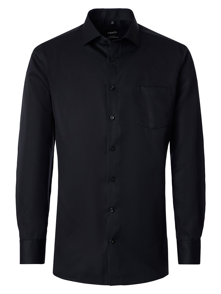 La camicia da ufficio comoda della collezione VENTI Comfort Fit rappresenta l'uomo colto e attento alla moda di oggi. Un taglio classico combinato con dettagli di prodotto alla moda promette un alto livello di comfort e rende questa camicia un maestro della combinazione. La camicia semplice de uomo del colore nero da uomo non dovrebbe mancare nel guardaroba di nessun uomo e può essere indossata con il collo elegante e intramontabile Kent per qualsiasi occasione e nella vita di tutti i giorni. Questa camicia da uomo VENTI Comfort Fit si presenta al meglio con una cravatta abbinata e un nodo di cravatta largo.