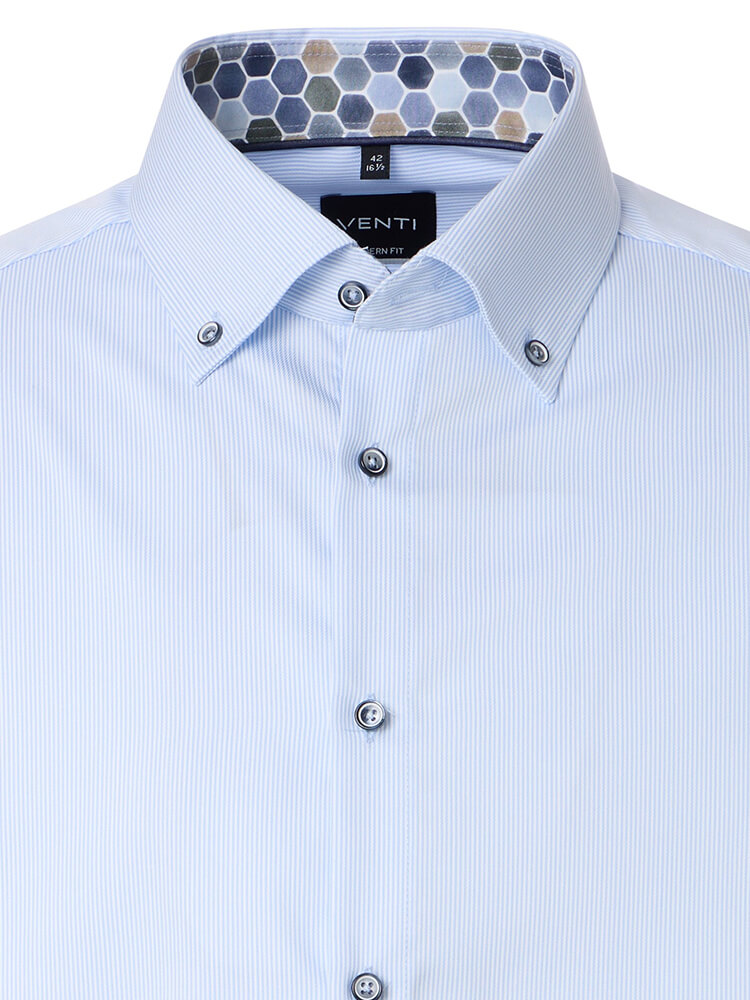La camicia da ufficio moderna della collezione VENTI Modern Fit rappresenta l'uomo sicuro di sé e alla moda di oggi. Un taglio contemporaneo combinato con dettagli di prodotto premium promette un alto livello di comfort, rendendo questa camicia un maestro di arrangiamento. La camicia a righe de uomo del colore azzurro da uomo non dovrebbe mancare nel guardaroba di nessun uomo e può essere indossata con il collo distinto e classico Button-down per qualsiasi occasione e nella vita di tutti i giorni. Questa camicia da uomo VENTI Modern Fit si presenta al meglio con una cravatta abbinata e un nodo di cravatta largo.