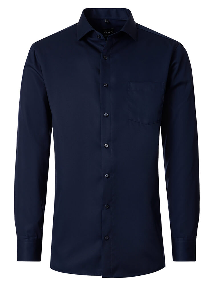 La camicia da ufficio moderna della collezione VENTI Modern Fit rappresenta l'uomo sicuro di sé e alla moda di oggi. Un taglio contemporaneo combinato con dettagli di prodotto premium promette un alto livello di comfort, rendendo questa camicia un maestro di arrangiamento. La camicia semplice de uomo del colore marina da uomo non dovrebbe mancare nel guardaroba di nessun uomo e può essere indossata con il collo distinto e classico Kent per qualsiasi occasione e nella vita di tutti i giorni. Questa camicia da uomo VENTI Modern Fit si presenta al meglio con una cravatta abbinata e un nodo di cravatta largo.
